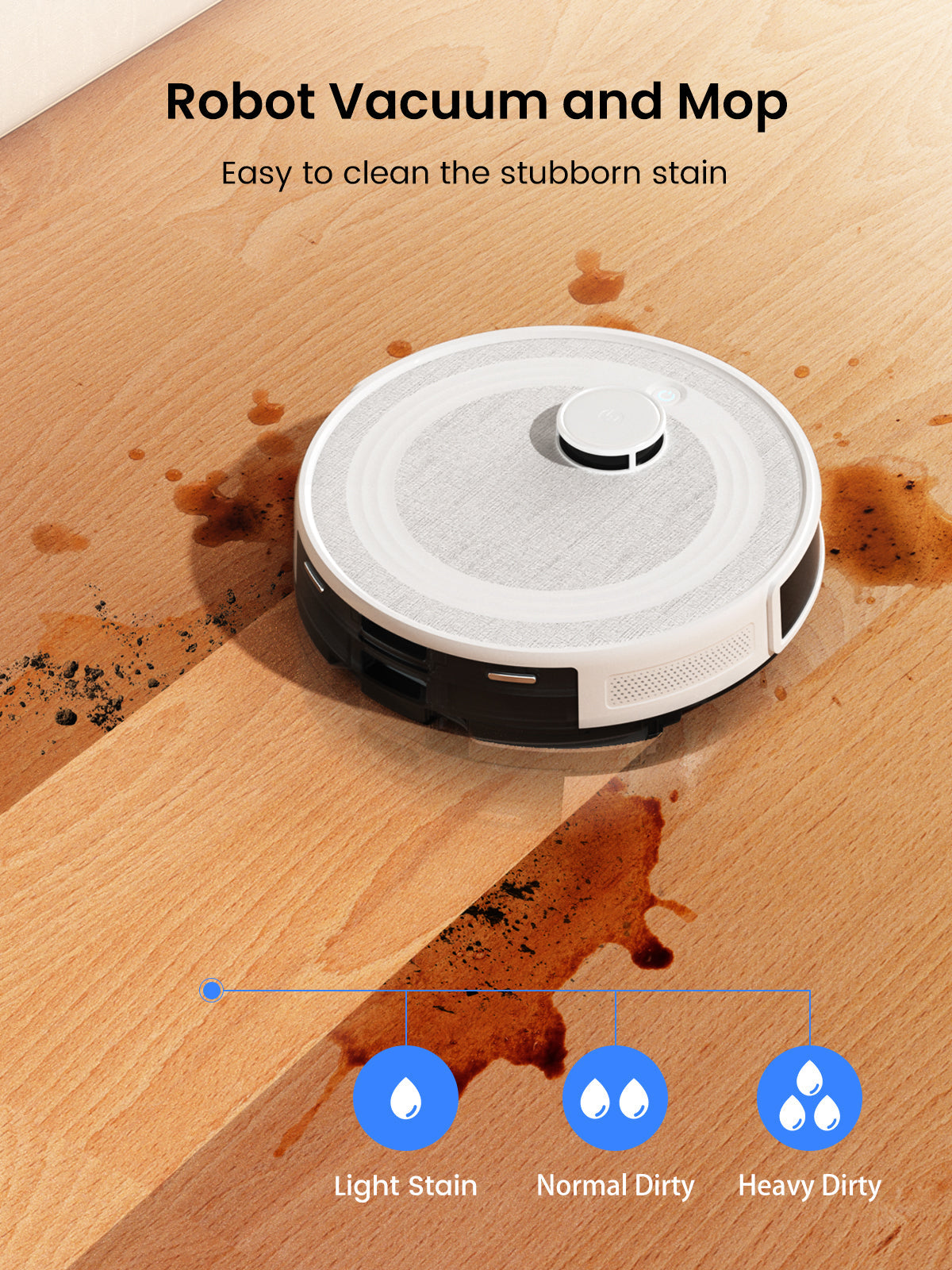 Vacuum and Mop in One Go:Easily customize your mopping intensity with 3-level adjustable water flow for each room via the app, ensuring a tailored cleaning experience. Adapt effortlessly to different floor types with precise water control for a smarter, more efficient clean.