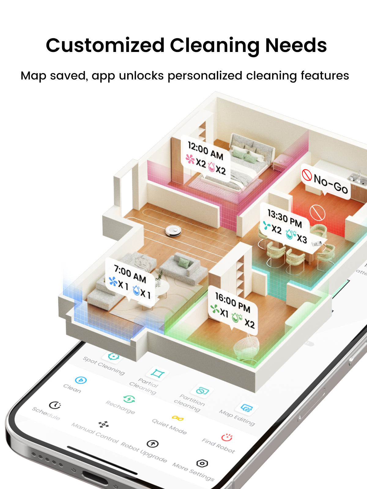Customize Your Cleaning: Set up room zoning, customized sweeping, no-go zones, and scheduled cleaning via the smart Lefant app. It supports various cleaning preferences, allowing you to adjust suction power, water volume, and cleaning frequency for different rooms. The robot vacuum is also compatible with Alexa, Google Home, and Siri for effortless voice control.