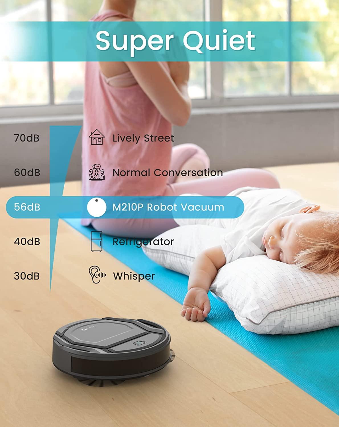 - 😊Compact Design: Standing at just 2.99 inches tall, the M210 Pro can easily access under furniture. Its quiet operation won't disturb you or your pets, ensuring a peaceful cleaning experience.