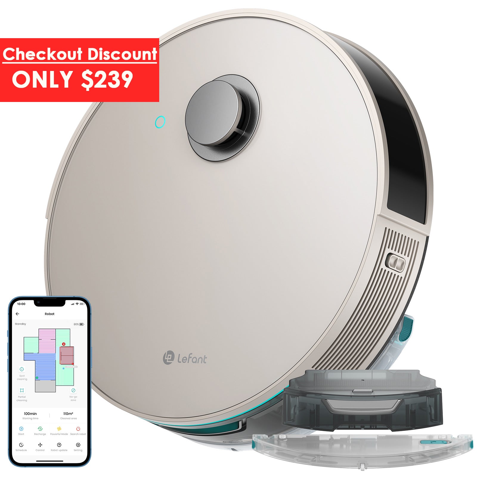 - š§²ć4000Pa Strong SuctionćThe suction power has 4 levels of intensity, which can be adjusted according to your needs, up to 4000Pa, and can easily clean everything from fine dust, biscuit crumbs, oatmeal to hair on hard floors. Lefant robotic vacuum cleaner and mop meets the cleaning needs of different households and is ideal for families with children or pets.
