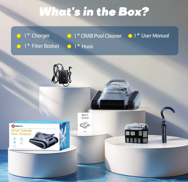 Bring home the smartest crustacean ever, the Seauto Crab, the most advanced robotic pool cleaner with 3D-Navi cutting-edge tech. This cordless wonder gets down to do your dirty job of cleaning the pool while you relax and plan for the summer poolside party!